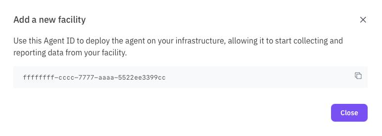 - Select the option to add a new source. The system will generate a unique Agent ID for the new agent.