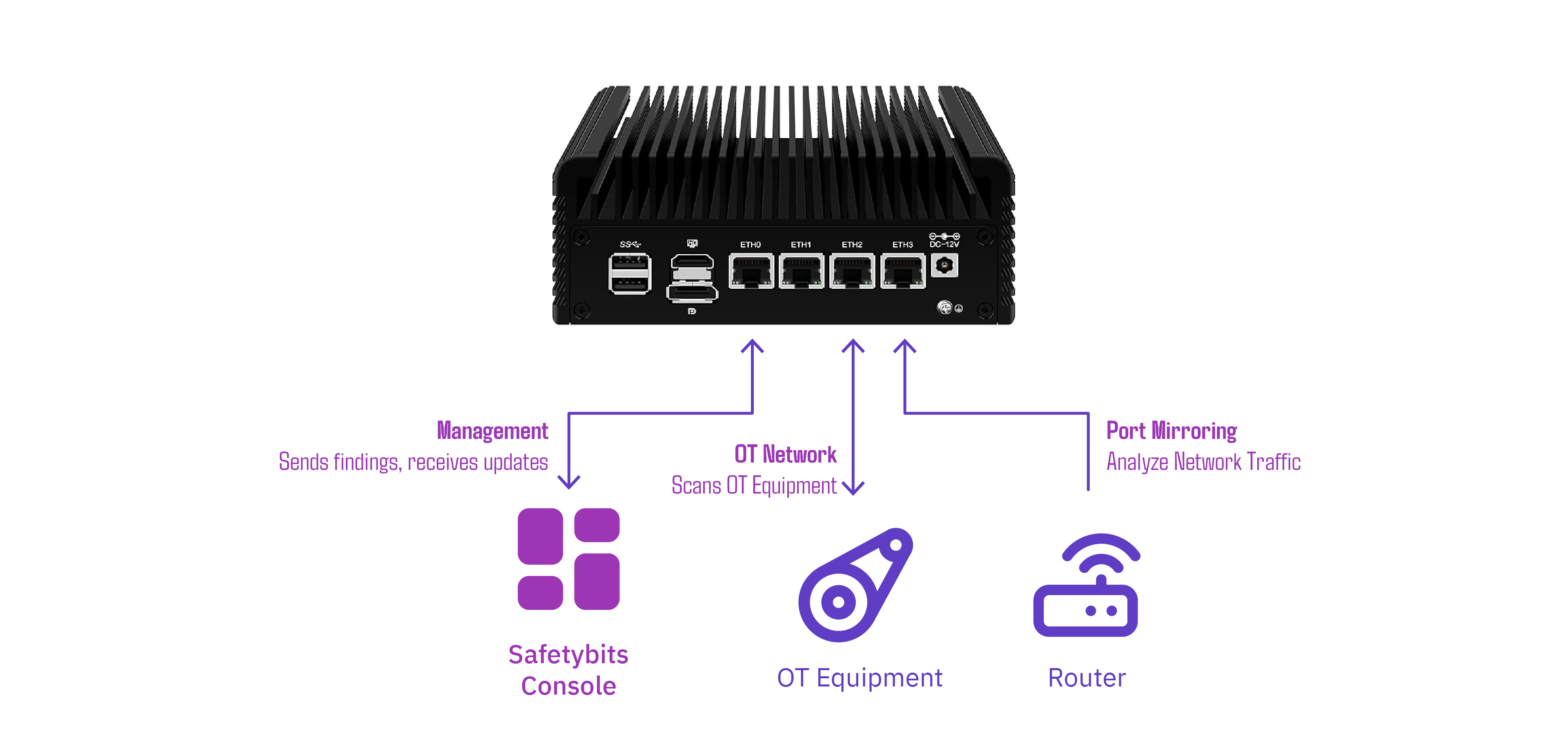 The Safetybits agent is delivered preinstalled on a purpose-built network appliance, ready for deployment in your infrastructure. This appliance is a critical component of the system, designed to seamlessly integrate into your network environment while maintaining robust security and performance.